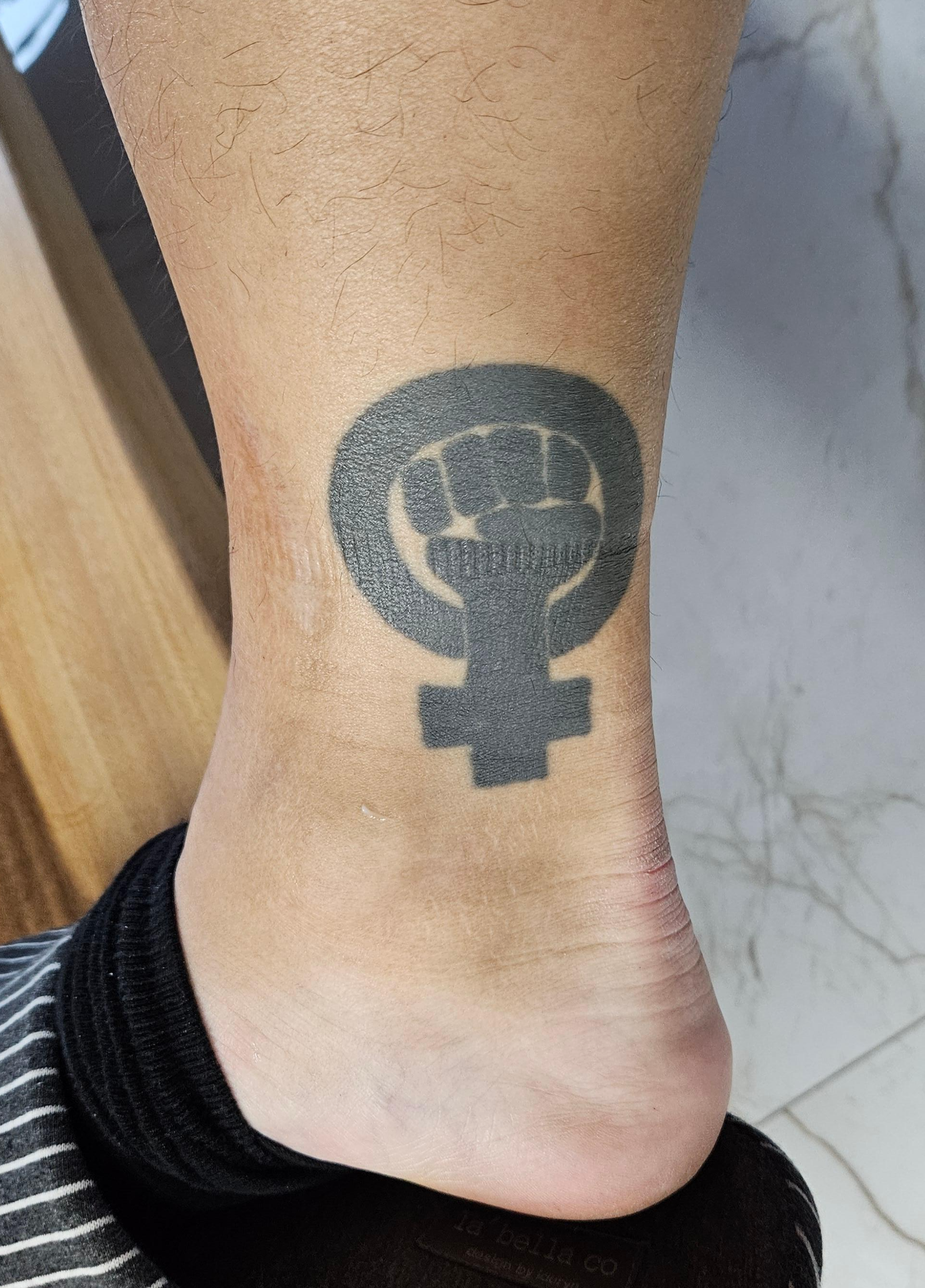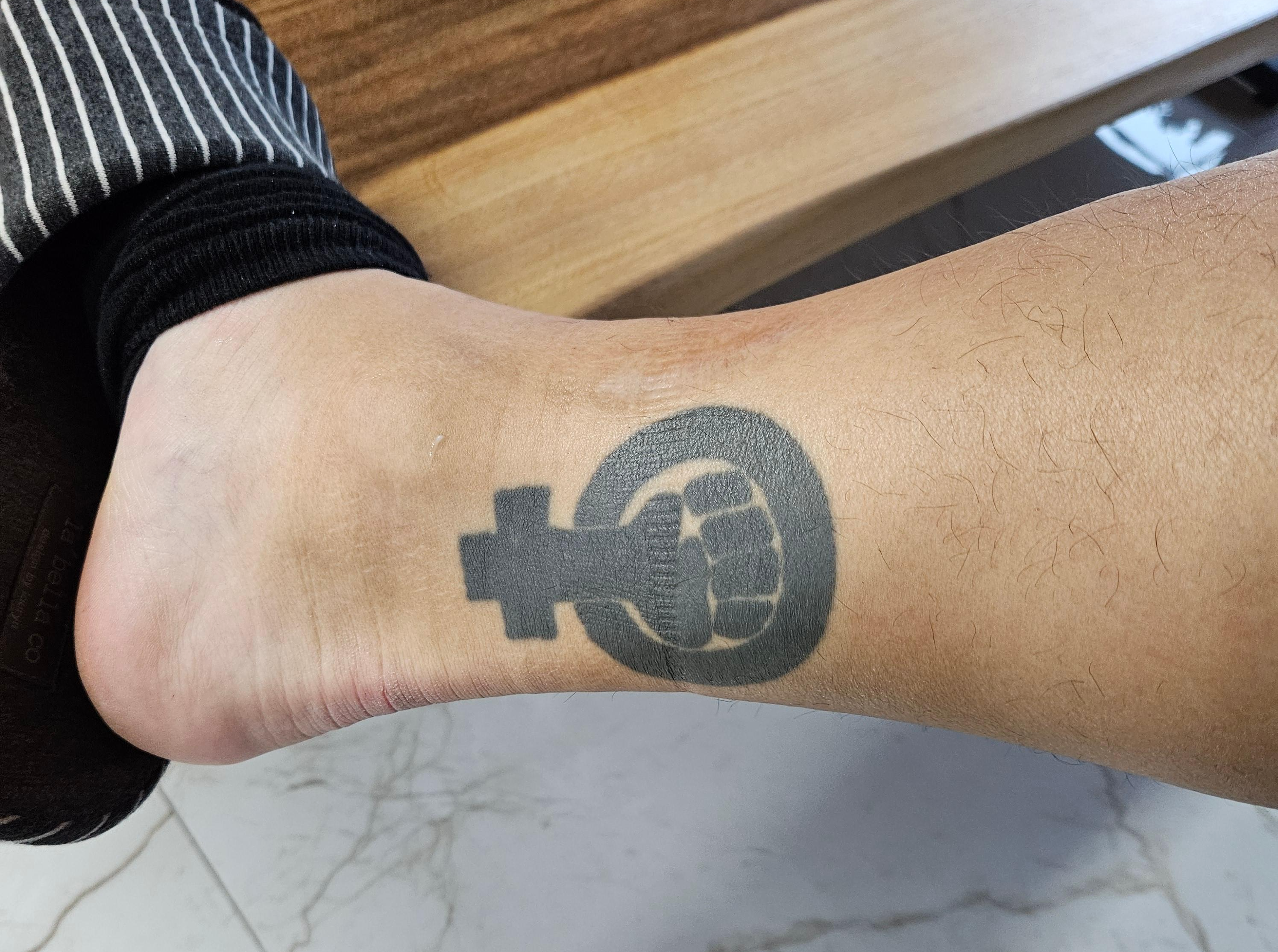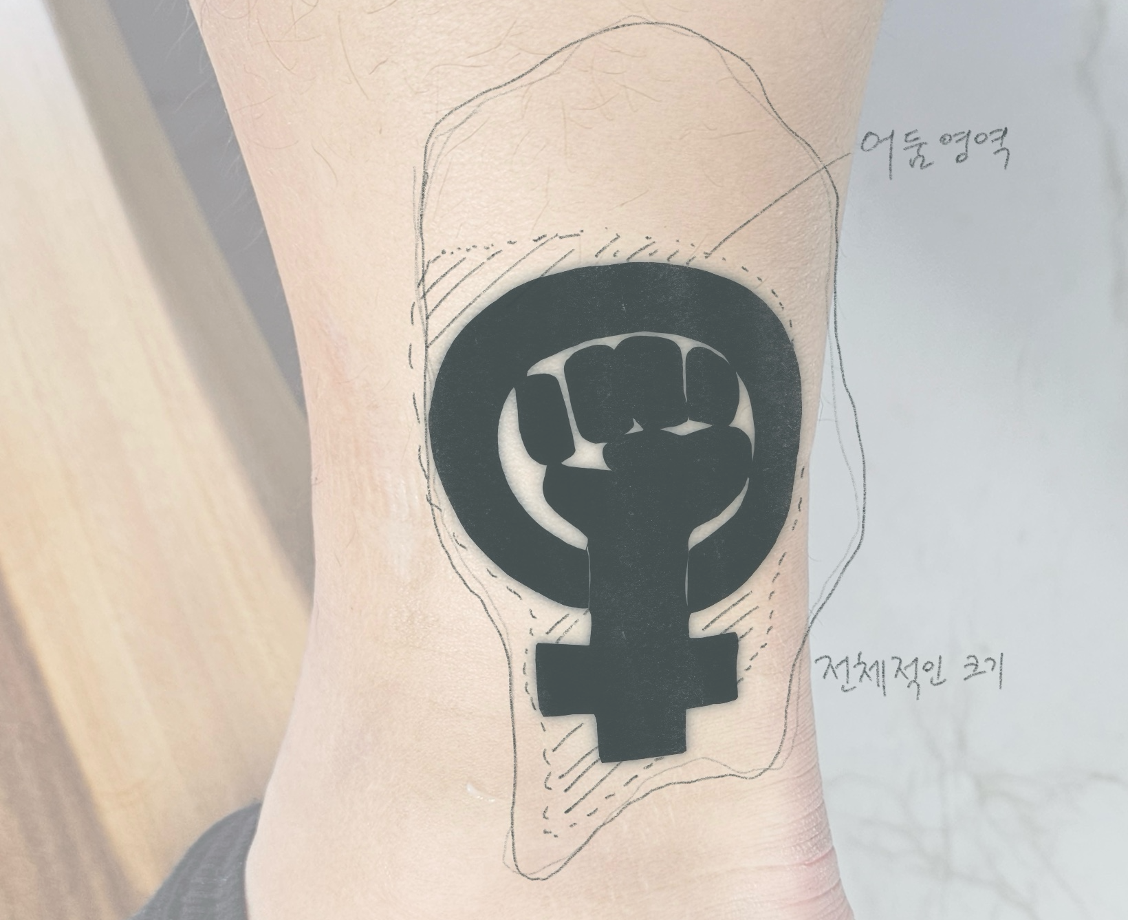 손님께서 굵은 블랙 라인의 여성 심볼 타투를 가리고 싶어 커버업 타투 문의를 주셨습니다.