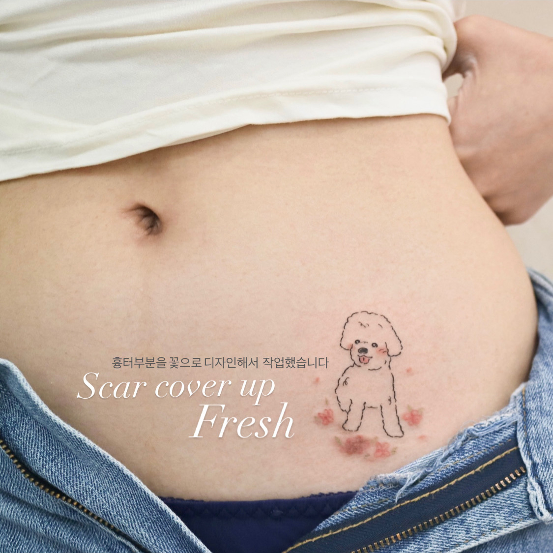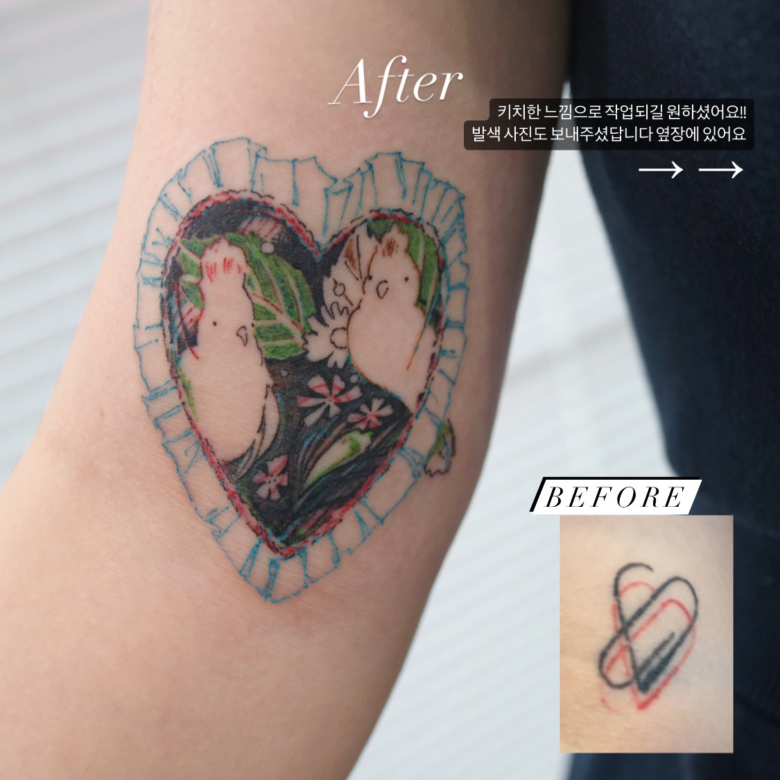 이 작업은 커버업 디자인을 고민하시는 분들에게 좋은 참고가 될 거예요.